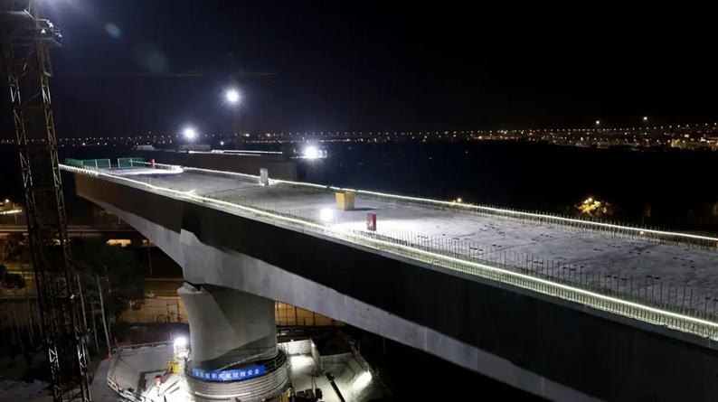In der Nacht des 8. Januar fand in Pudong, Shanghai, ein stilles „Luftballett“ statt. Der durchgehende Träger der Chuansha-Großbrücke mit einem Gewicht von etwa 10.000 Tonnen vollführte unter der Zugkraft von vier intelligenten Hebevorrichtungen eine 60-Grad-Drehung mit millimetergenauer Präzision und überspannte erfolgreich die in Betrieb befindliche Magnetschwebebahnlinie und die Yingbin-Schnellstraße.