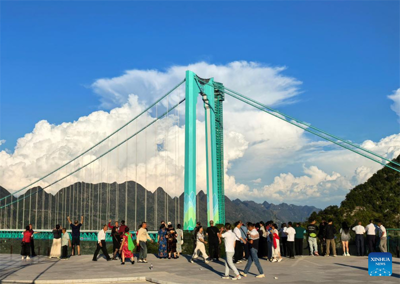 Während des Mittherbstfestes und der achttägigen Feiertage zum Nationalfeiertag in China, die am Mittwoch endeten, ist die neu eröffnete Huajiang-Grand-Canyon-Brücke, die 625 Meter über dem Beipan-Fluss thront, zu einer Hauptattraktion geworden. Geschätzt haben mehr als 100.000 Besucher die Brücke und ihre Umgebung bis Dienstag besucht.