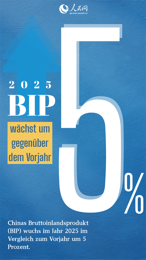 Chinas Bruttoinlandsprodukt (BIP) wuchs im Jahr 2025 im Vergleich zum Vorjahr um 5 Prozent und erreichte damit das jährliche Ziel von rund 5 Prozent, wie offizielle Daten am Montag zeigten.