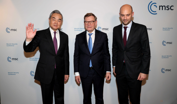 Am Freitag hat sich der chinesische Außenminister Wang Yi in München mit seinen deutschen und französischen Amtskollegen Johann Wadephul und Jean-Noël Barrot getroffen.